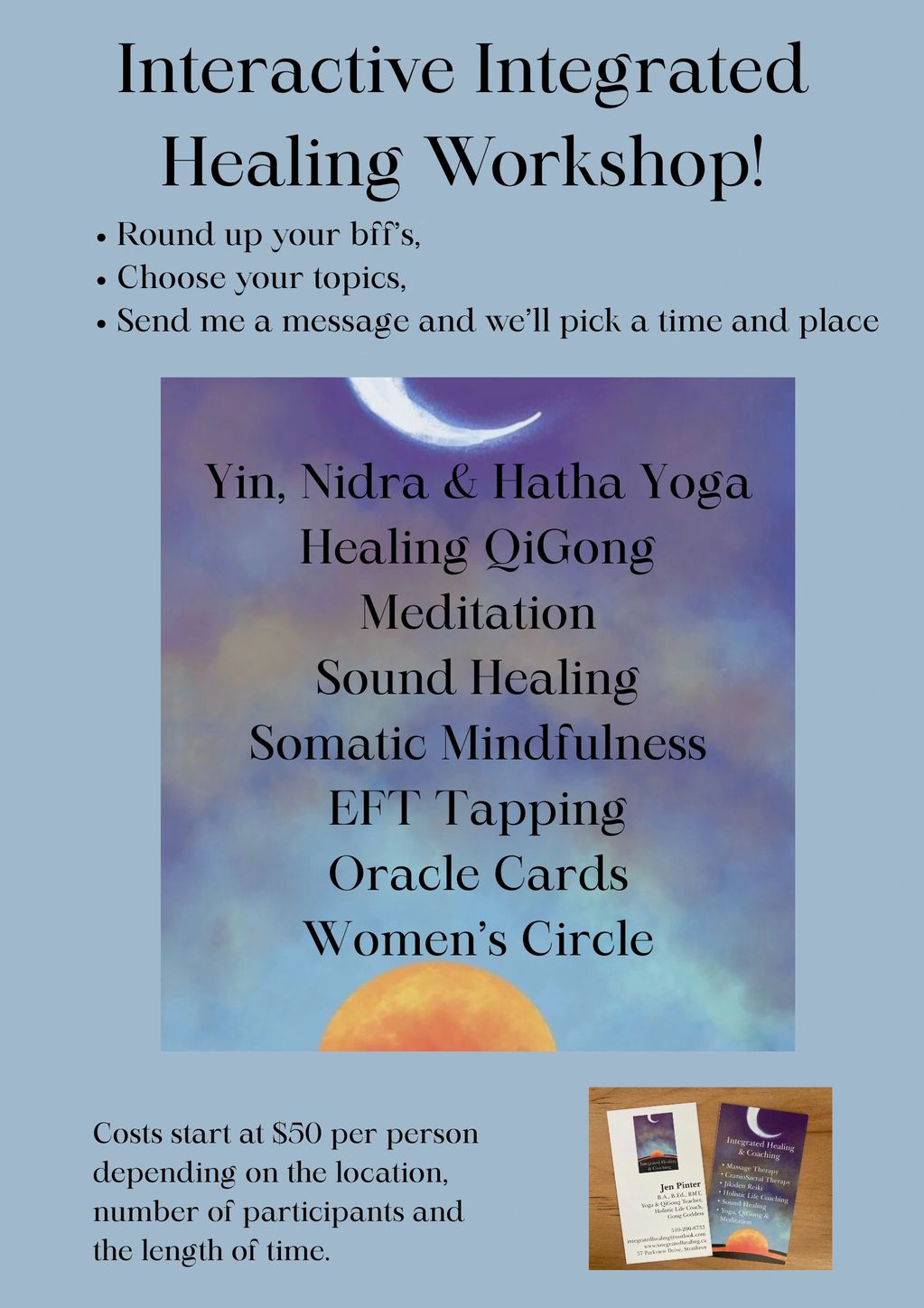 Please contact Jen at integratedhealing@outlook.com
